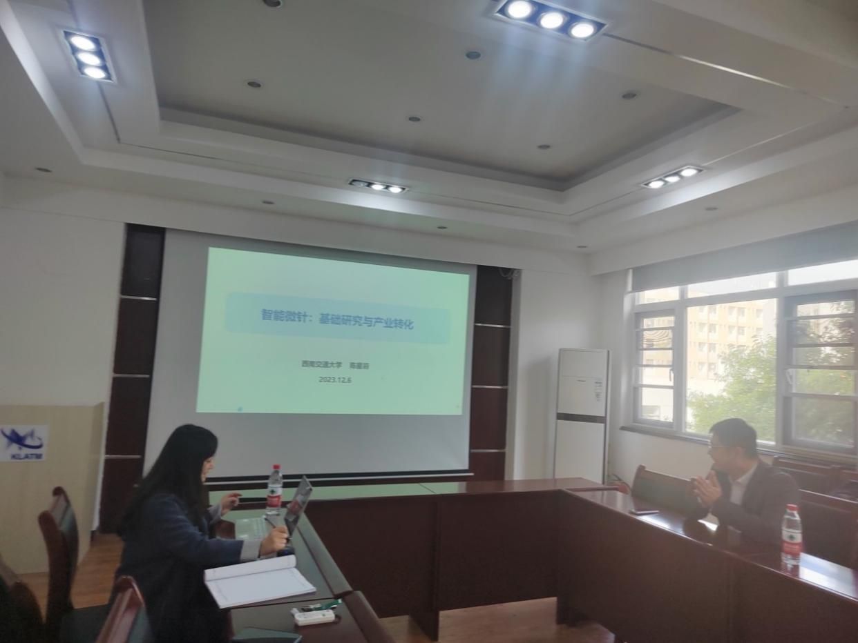 实验室。副研究员陈星羽介绍了智能微针的基础研究和产业转化情况,双方就在心脏应用微纳药物递送系统、微纳界面调控等方面进行了详细的探讨交流。