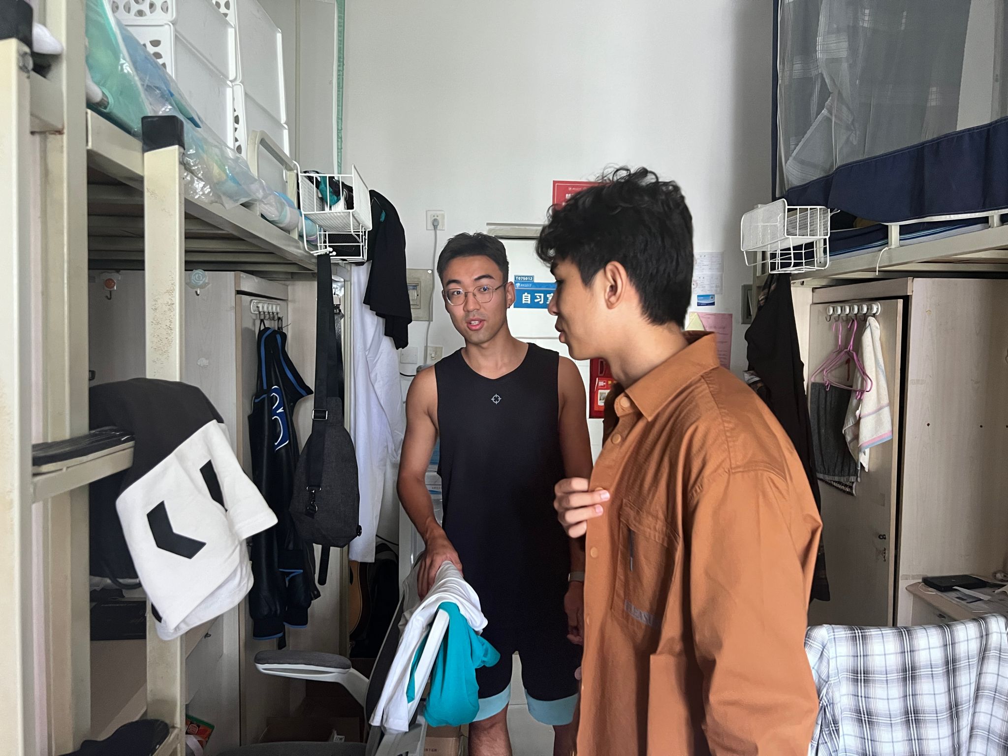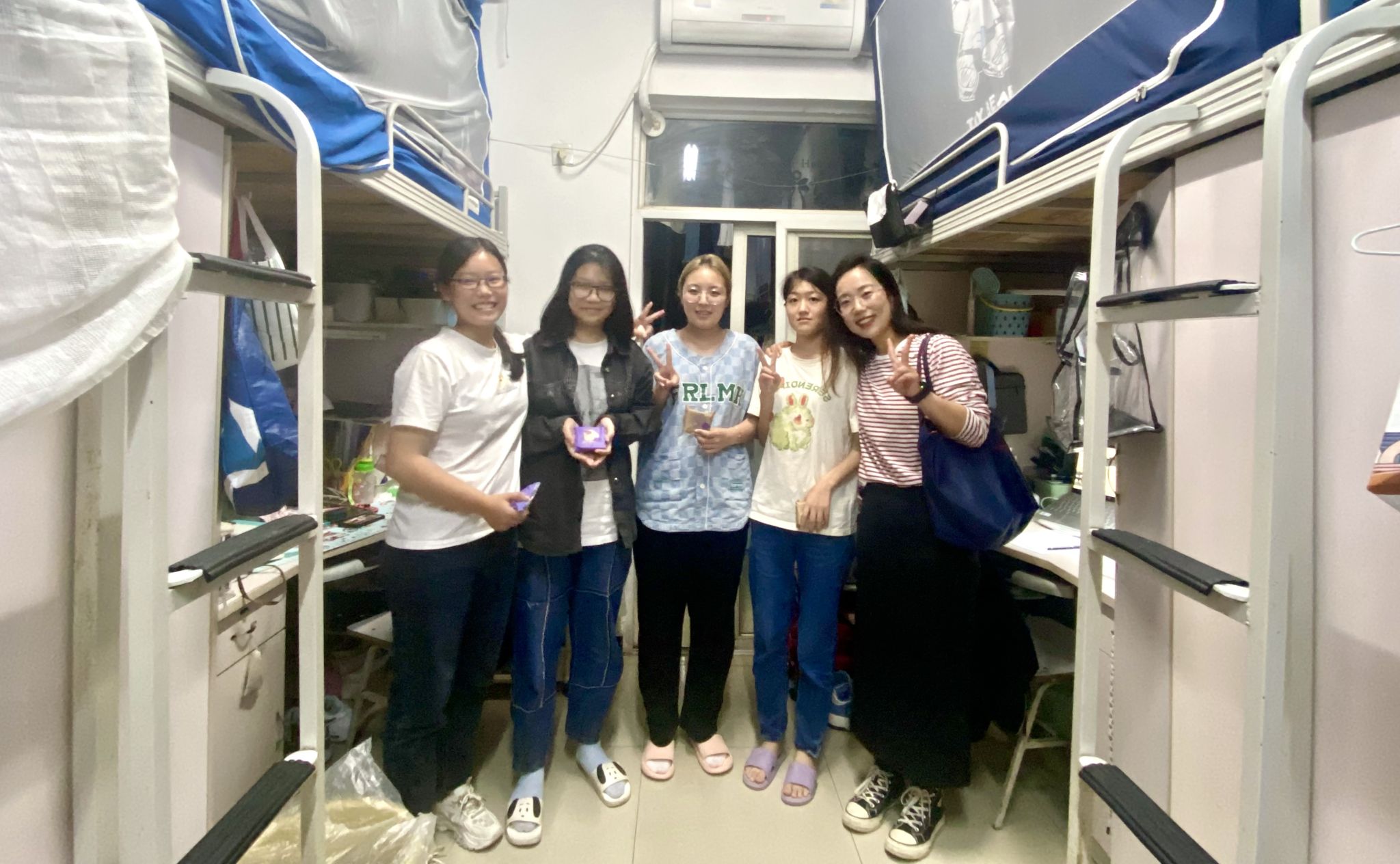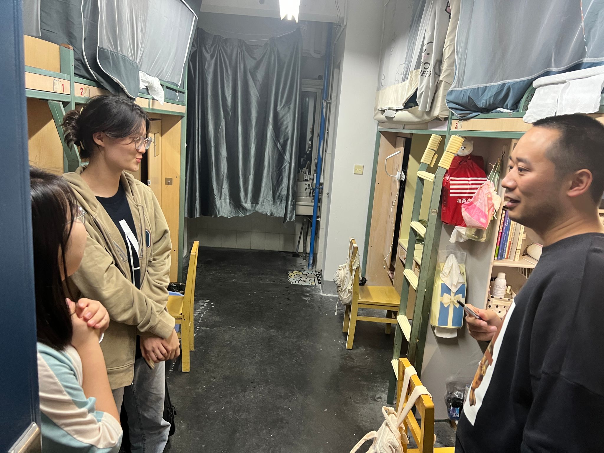 学生工作组深入学生宿舍看望在校学生,送上中秋和国庆祝福。
