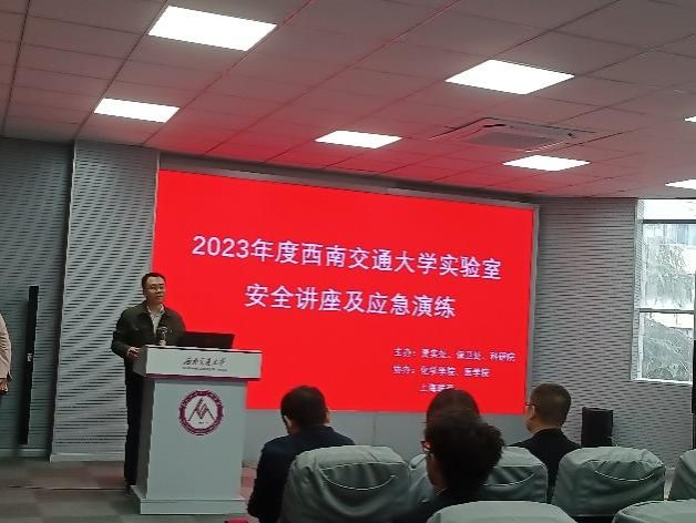 院长助理郑晓彤主持安全培训讲座,资实处副处长闻毓民,保卫处副处长朱云峰,消防科科长吴小平,科研院张化雨老师,化学91暗网