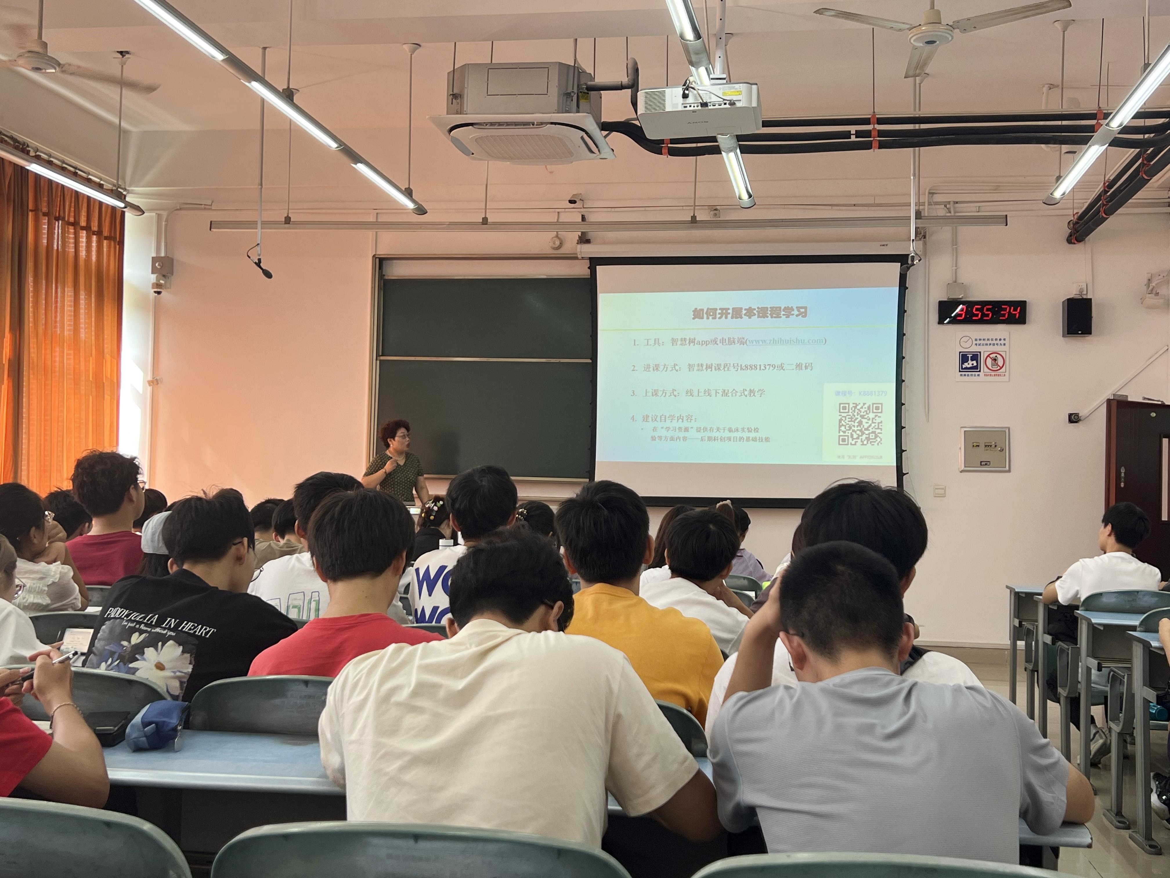 为本科生授课的各位老师,均提前到达教室,为第一周的课程做着准备。2021级一名学生因脚部骨折无法到课,老师们为使学生学业不掉队,一边进行线下课堂教学,一边开启线上直播教学。