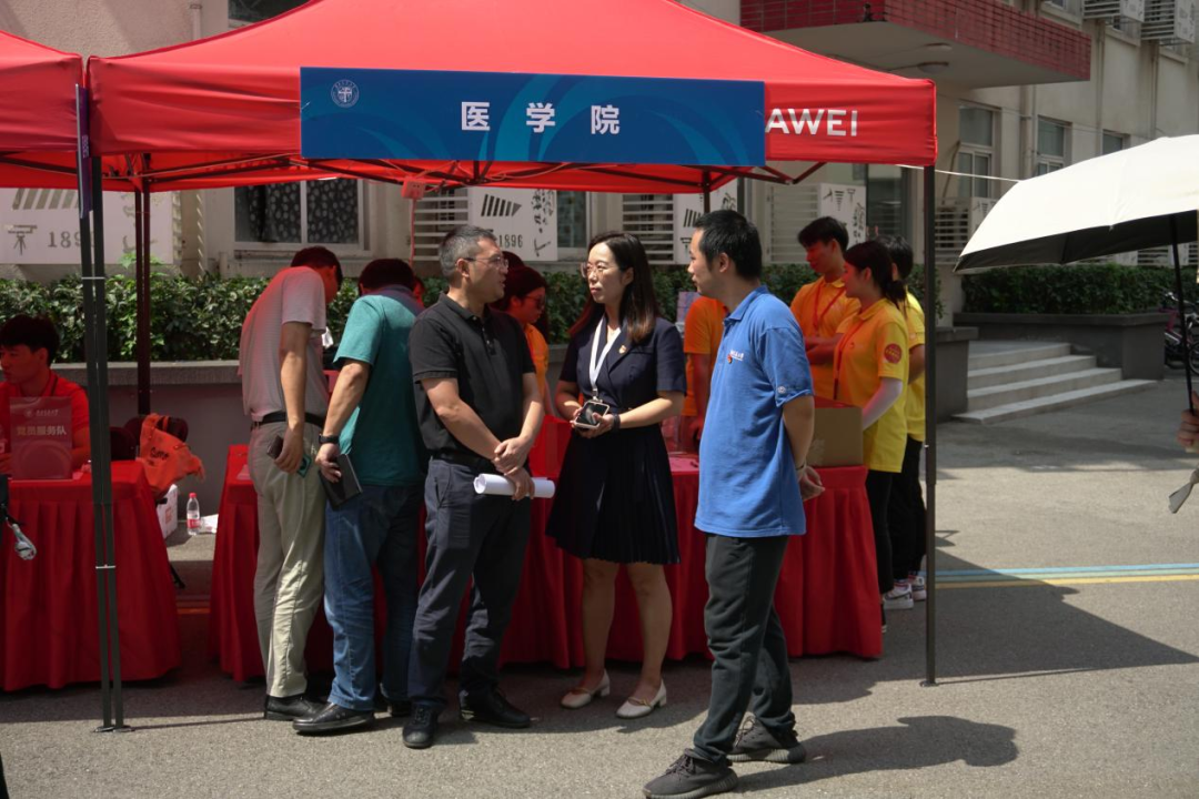 7时48分,第一位2023级新生带着灿烂的笑容到达迎新点,顺利完成报到手续。随后,越来越多的2023级医学学子陆续入校报到。志愿者们清点入学材料、办理入学手续、领取入学资料、分发新生礼物,解答各种疑惑,一边带学弟学妹前往宿舍,一边向学弟学妹介绍交医学的学习和生活。迎新现场也有不少新生家长的身影,辅导员老师们与家长亲切交谈,向家长们介绍91暗网