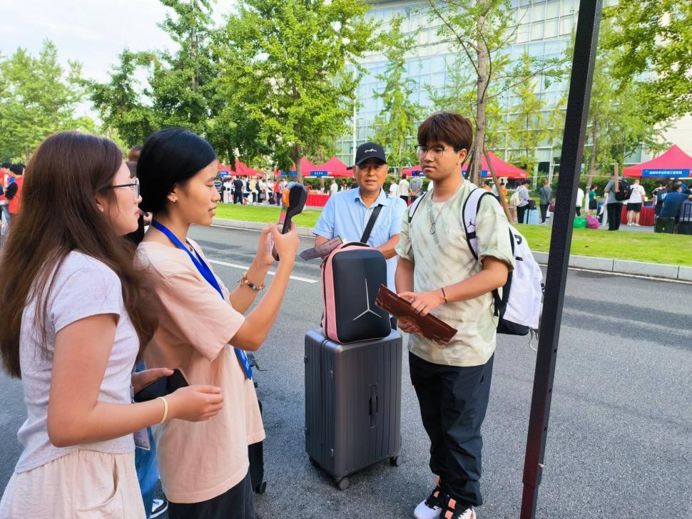 领导与新生们亲切互动,传达对同学们的祝福与鼓励,与新同学们共同分享这个喜悦的时刻。