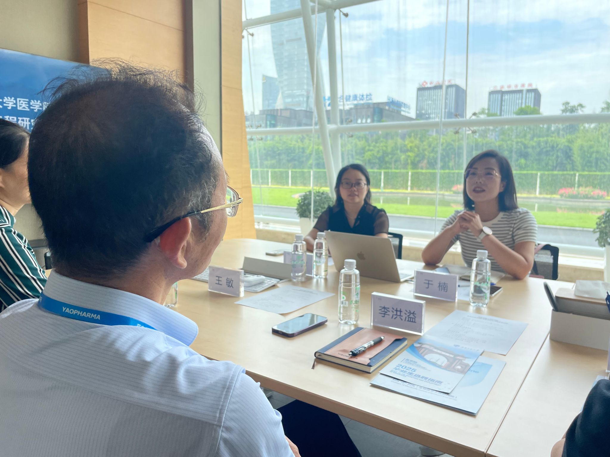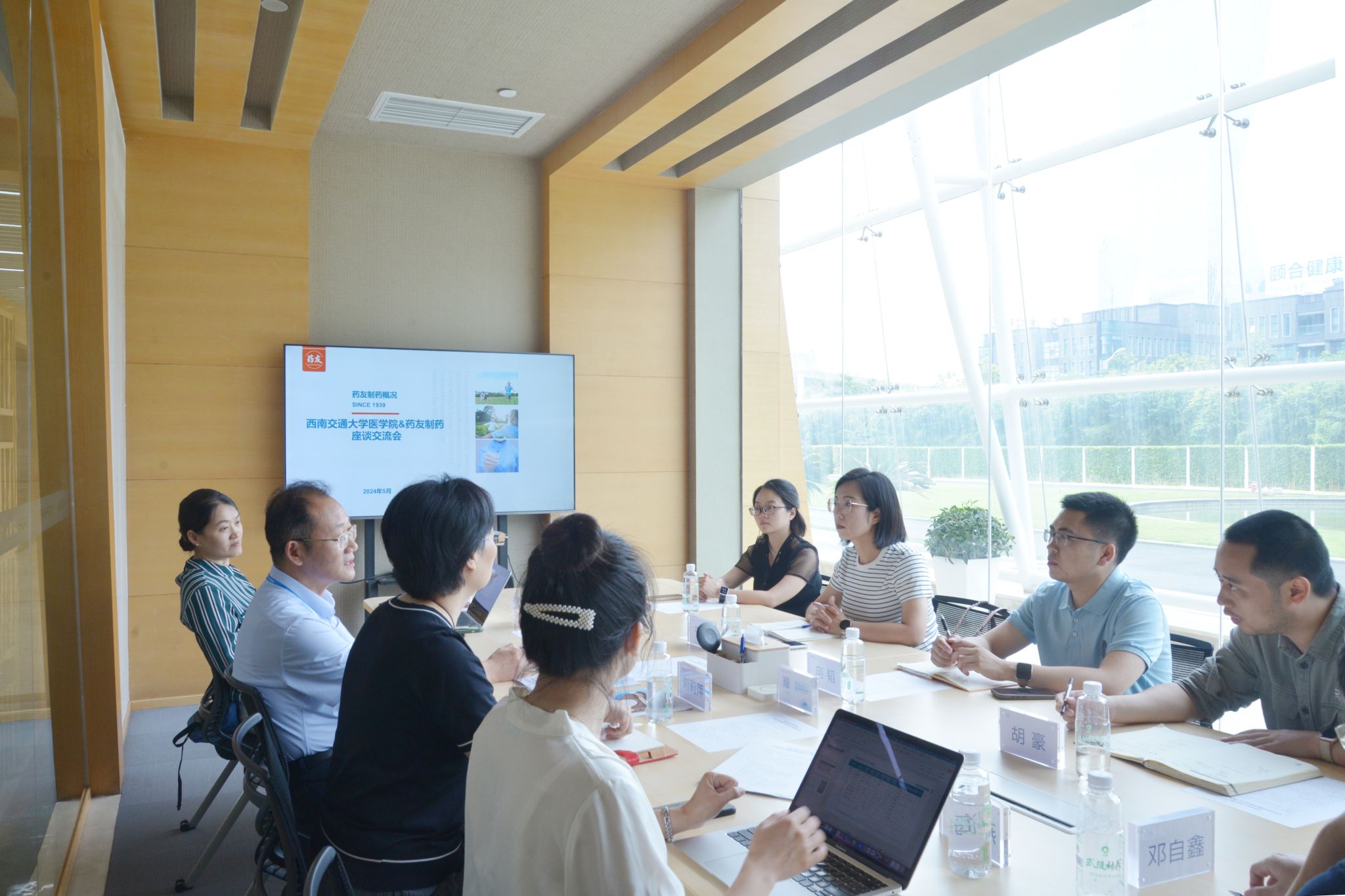 党委副书记于楠、本科教学主管苟雪、生医系主任向韬、团委书记胡豪一行4人首先参观了药友制药的展厅和研发中心,深入了解公司的发展历程、产品线以及研发成果。随后,双方领导在座谈会上进行了深入交流。