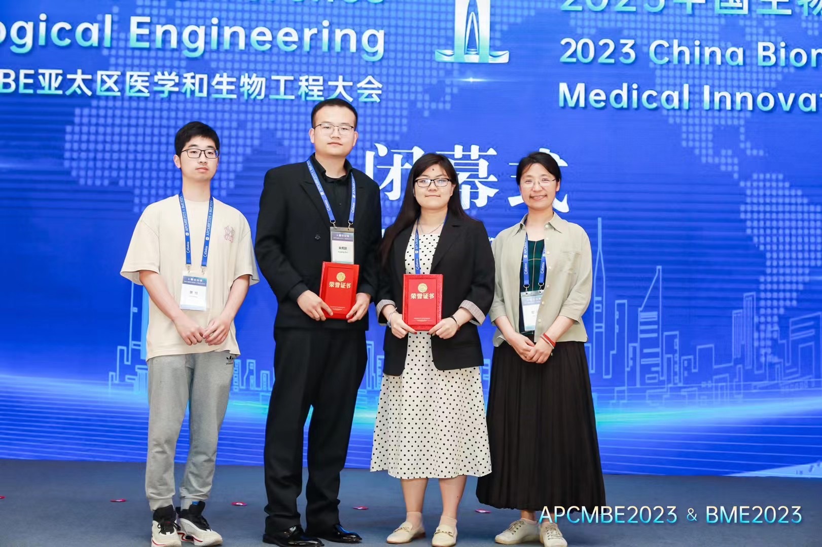 生物医学工程系硕士研究生吴月皓同学,与一众博士研究生同场比拼,在激烈的竞争中脱颖而出荣获二等奖,朱秀鹏获优秀论文口头报告。