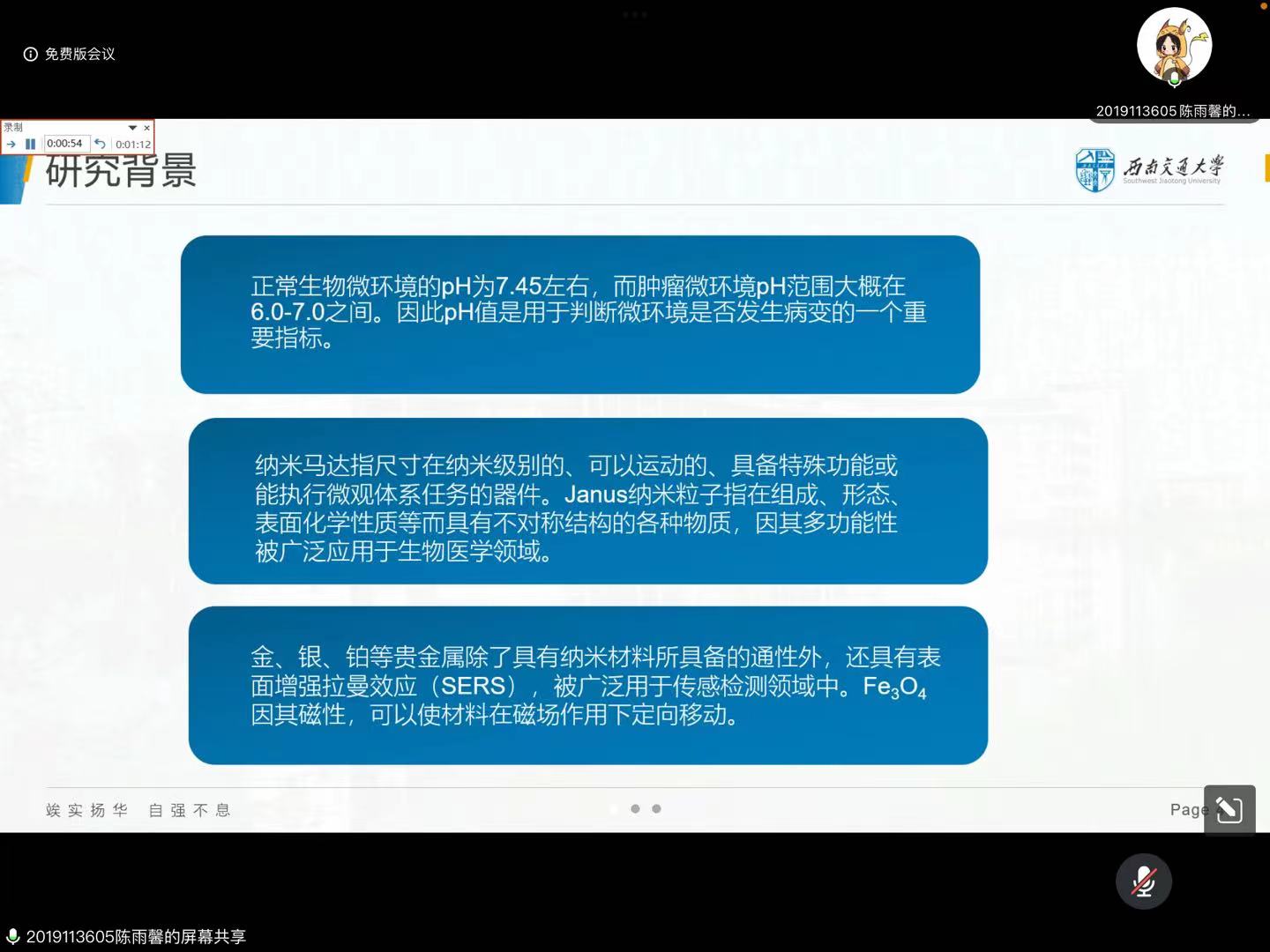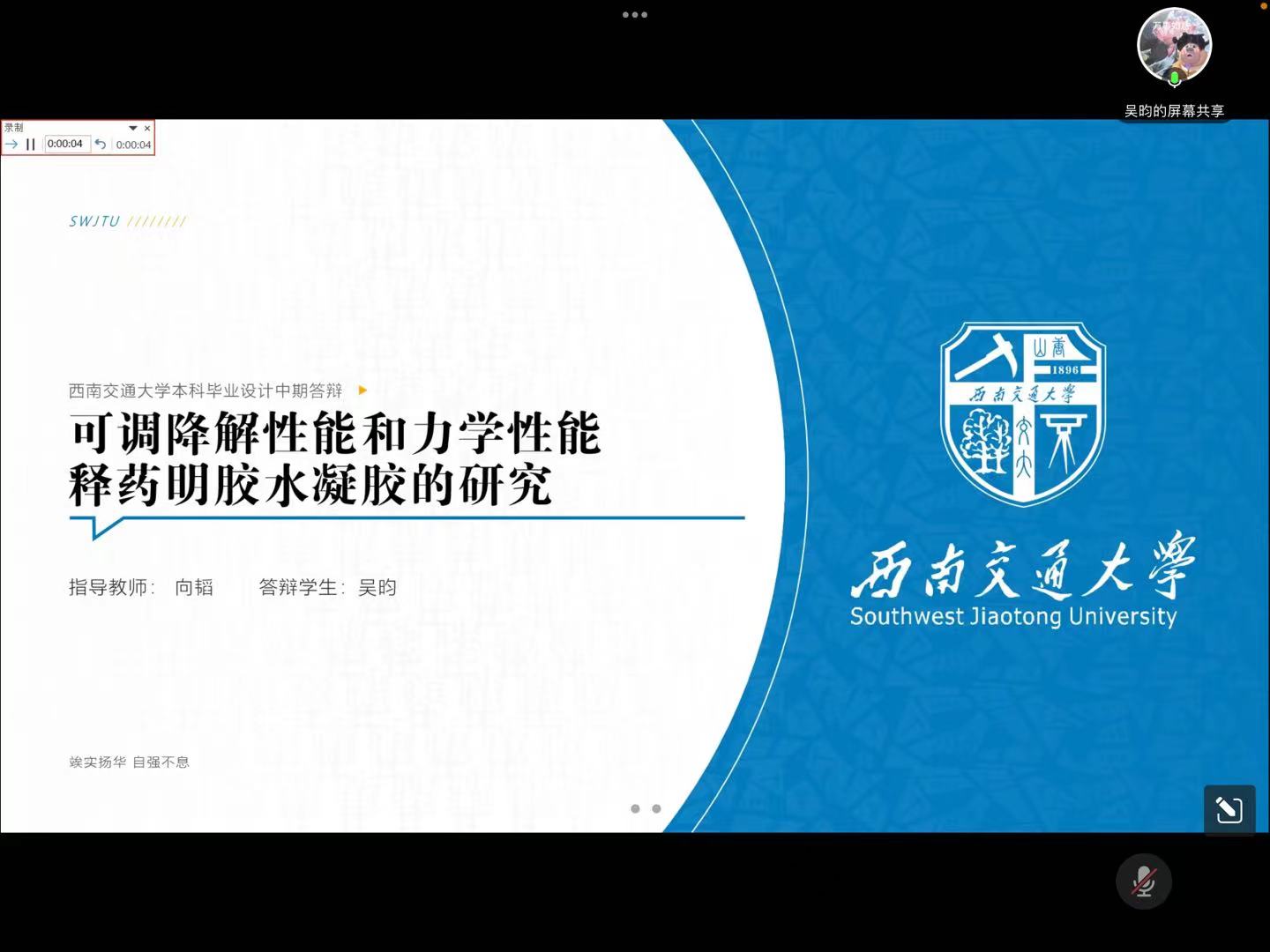 实际情况,本次中期答辩采取线上形式。其间,参会老师重点检查毕业设计(论文)开展情况、任务书执行进度、与指导教师沟通及指导纪要填写情况、存在的问题及拟解决问题的方案和措施等。在答辩过程中,同学们一一展示了自己的科研成果,包括研究背景、研究方法、研究结果等。老师们对每位同学的答辩都提出了精准的问题,并就答辩中出现的问题给出了自己的观点和建议。