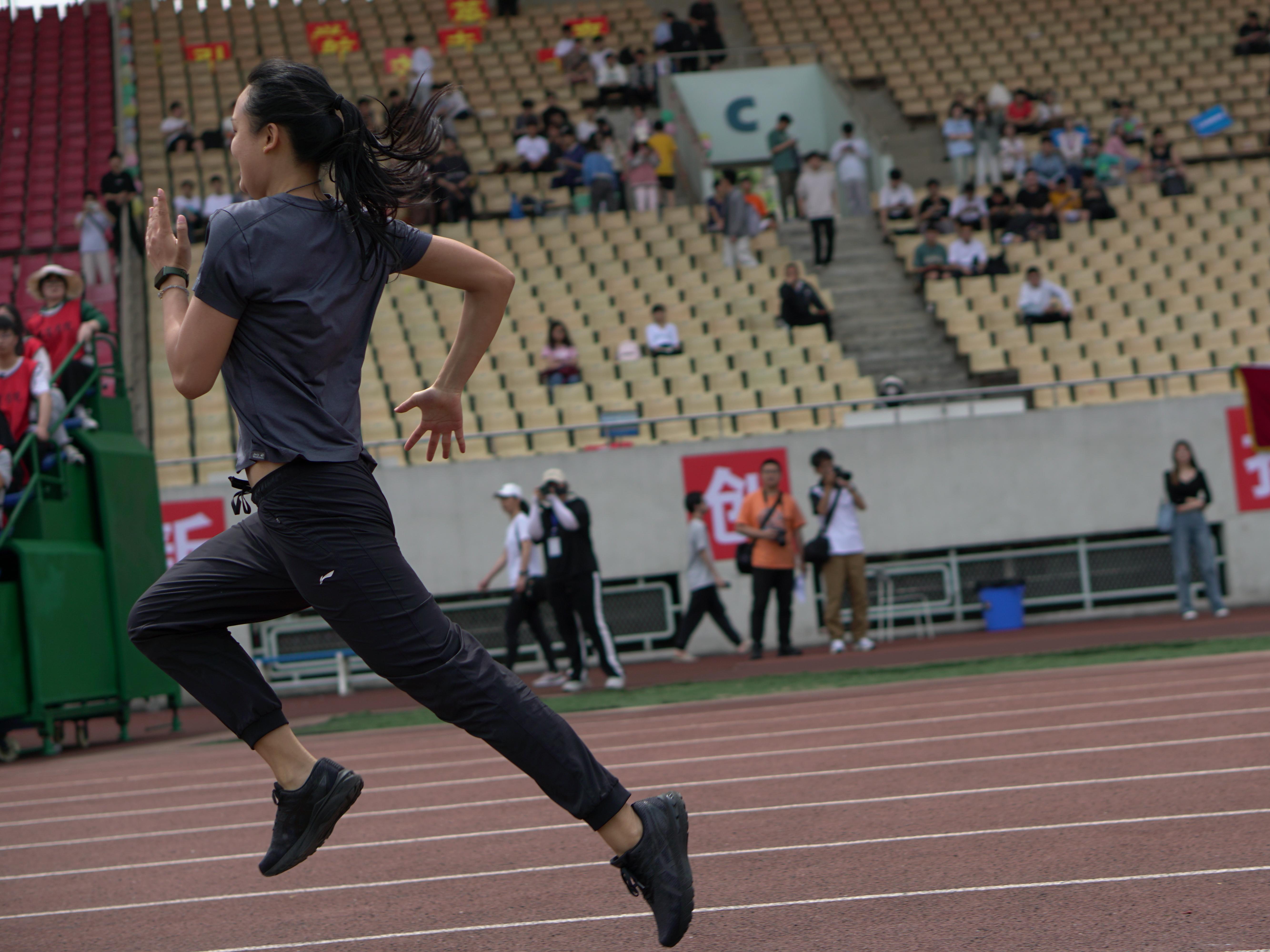 学生朱煜欣在女子组短跑100米决赛中取得了第二名的好成绩。