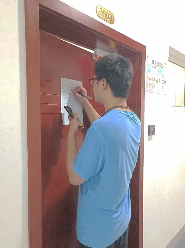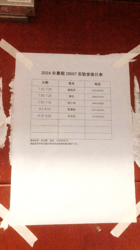 实验主管郑晓彤带领实验室老师进行了本次检查。在本次检查中,检查组着重排查实验室安全隐患及暑假中各实验室值班表安排张贴情况。