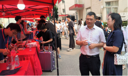 对新生的深切期望与美好祝福。新生陆续报道,志愿者们有序忙碌,清点入学材料、办理入学手续、领取入学资料、发放新生礼物、解答疑问,积极带领新生熟悉宿舍环境和校园生活。李书记和于书记在现场与新生们进行了深入交谈,送上真诚的祝福与鼓励,共同庆祝这个难忘的时刻。