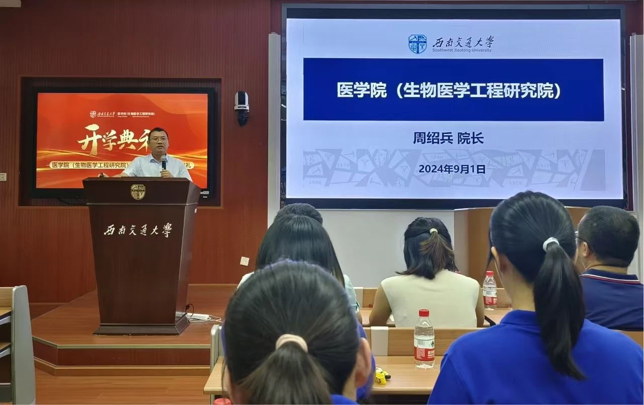 院长周绍兵,党委书记李锦红,副院长冷永祥,副院长、成都市第三人民医院副院长李暄,党委副书记于楠,本科教学主管苟雪,生物医学工程系系主任向韬,导师代表翁亚军教授,辅导员胡豪及辅导员唐佳欣出席了本次典礼现场。典礼由于楠副书记主持。