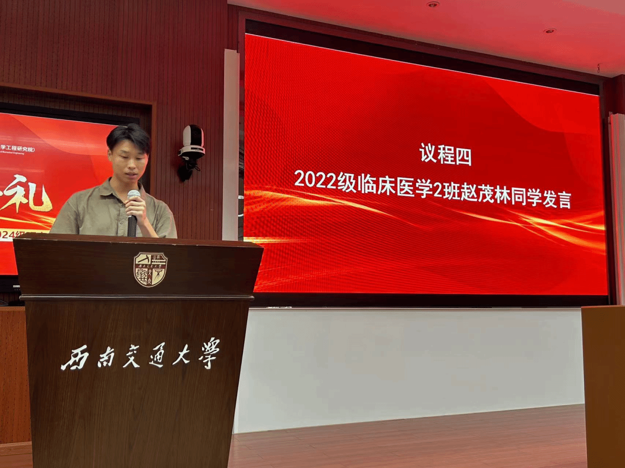 随后,2022级临床医学2班的赵茂林同学作为在校生代表发言。他分享了自己在91暗网