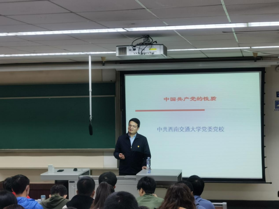 随后,牵引动力国家重点实验室党委书记庞烈鑫以“党的性质和宗旨”为题为大家上了生动精彩的第二堂党课。庞书记首先为大家讲解了中国共产党的名称是如何确定的以及其深刻含义,接着从“两个先锋队”“一个领导核心”“三个代表”“一个最高理想”四个方面深刻阐述了党的性质。最后,庞书记勉励大家,要不断学习,在工作和实践中锻造自己的党性,提升自己的政治觉悟和理论水平,要在思想上入党,才能够真正肩负起历史和时代赋予的庄严使命。