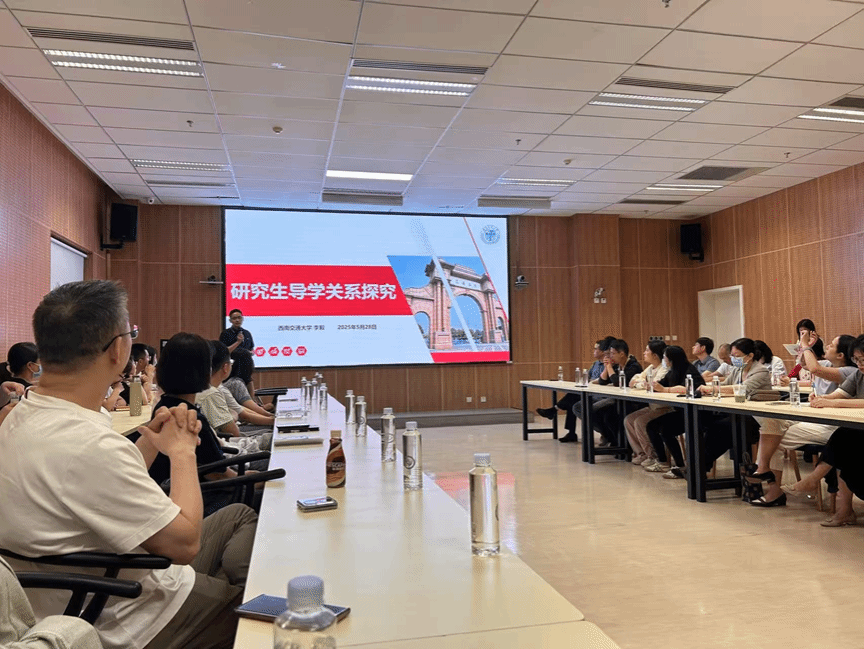 党总支书记李毅以 “研究生导学关系探究” 为题,结合二十余年学生工作经验,生动剖析 “00 后” 学生群体特点,围绕如何构建和谐的 “亦师亦友型” 导学关系组织研讨并给出具体建议。他提出,构建导学共同体可打破传统导师与学生间的单向指导模式,形成师生共同参与、相互学习、共同成长的新型教育模式,有利于整合各方资源,提升整体教育效果。