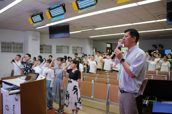 宣誓仪式结束后,党委书记李锦红为同志们讲授了专题党课《谈谈理想信念》。李锦红同志用深刻且易懂的语言,联系理论和实际,围绕“理想信念”这一主题,从以下三个方面做了讲授:一是为什么要谈谈关于人生理想的话题;二是医学生与“精医报国”人生理想;三是怎样树立践行“精医报国”人生理想。李锦红同志还借“中国肝胆外科之父”吴孟超院士的感人事迹告诫我们党员和入党积极分子要时刻谨记为人民服务的初衷,将这份执着与信念永远铭刻在自己的心里。