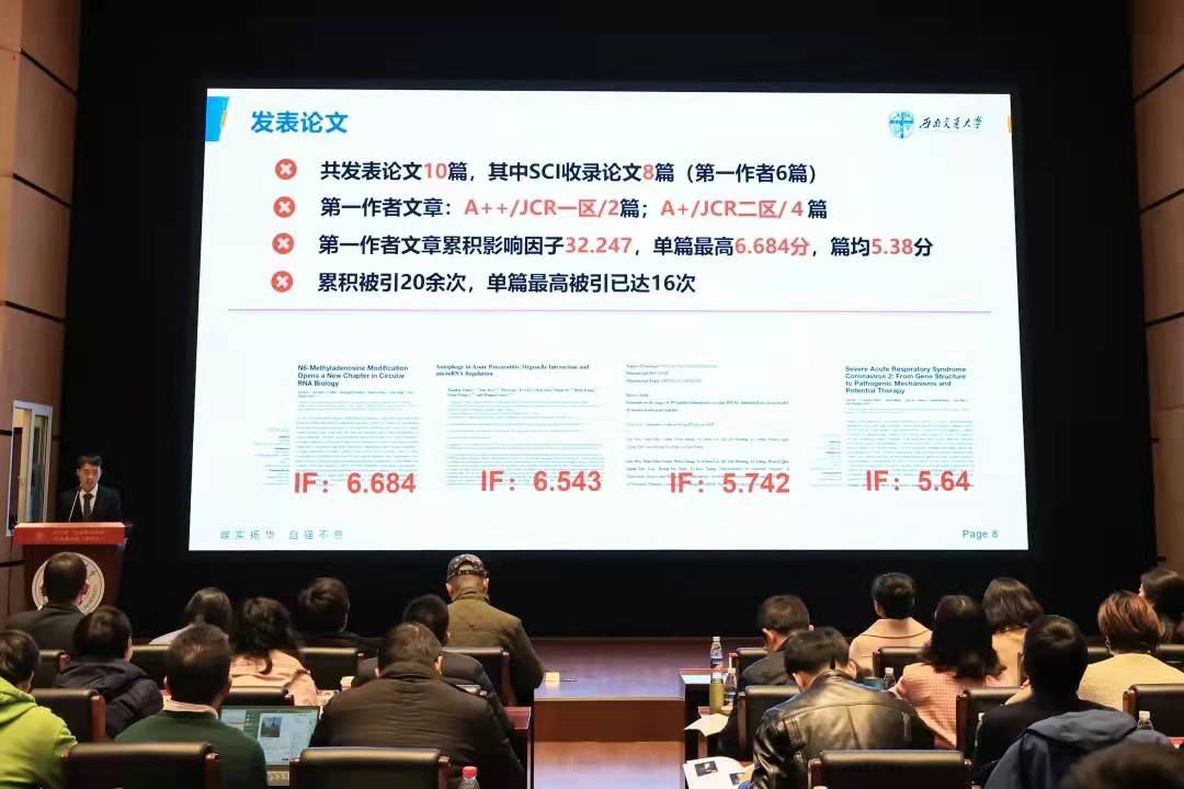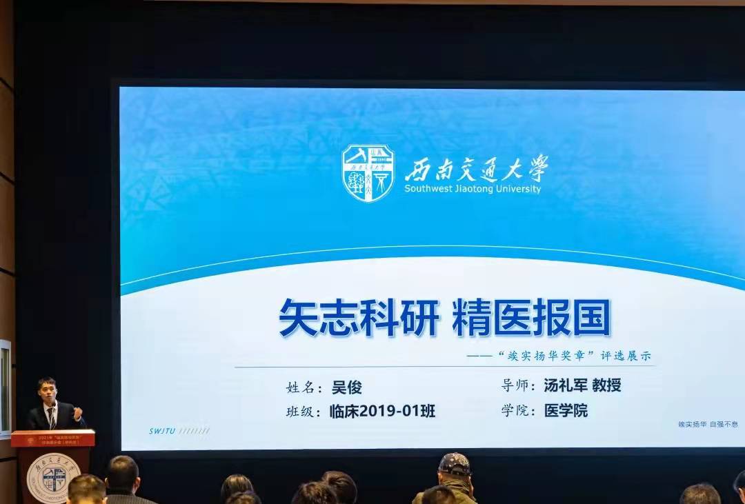 攻读硕士学位期间,主要从事急性胰腺炎相关研究,学术上发表论文10篇,其中SCI 收录论文8篇,第一作者6篇;第一作者文章中A++/JCR一区/2篇;A+/JCR二区/4篇,曾荣获省级优秀毕业生等各类荣誉十项。新冠疫情爆发初期,吴俊在全球首次全面解析了新冠病毒致病过程和结构特征,并从预防感染、治疗等方面提出了干预方案,其研究成果发表在SCI一区期刊并获专家们高度评价。此外,吴俊同学还积极投身高原战创伤相关研究,并已取得阶段性成绩,这些成果有力提升了高原卫勤能力、保障人民军队捍卫国家主权和领土完整,也将为川藏线作业施工人员提供全新的医学保障。谈及未来的道路,他说到:“矢志科研,精医报国,做精诚大医,我的青春,将在党和人民最需要的地方绽放绚丽之花!”