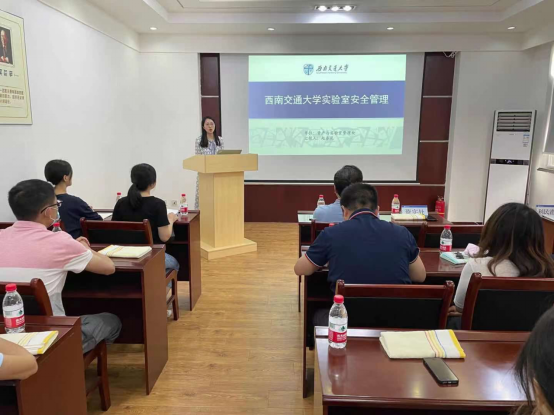 实验室的管理模式与相关规章制度,向同学们介绍了近年来多次开展的安全知识竞赛、安全讲座及演练、安全教育培训等活动并鼓励在座师生积极参与。