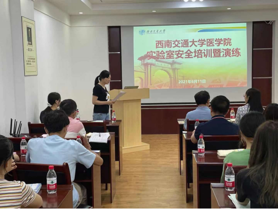 副院长翁杰担任总指挥,资实处安全科赵春花老师受邀为全体师生做实验室安全培训;成都利民消防宣传中心李斯杰教官做消防安全培训并全程指导应急演练活动。