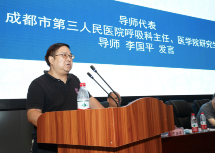 钟南山院士博士生、全省首个以钟南山命名的院士工作站负责人、成都市第三人民医院呼吸与危重症医学科主任李国平作为导师代表发言,和同学们分享了多年以来总结的学习心得,并表示将竭尽全力帮助学生们步入成长正轨。
