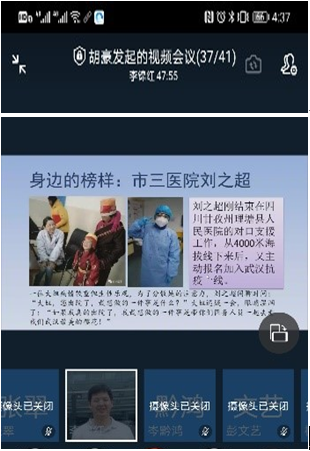 随后,党员们纷纷结合居家防疫和自身医学专业发表看法,进行交流与讨论。基础2017级王孝平将流感和新冠肺炎的死亡率进行对比,感慨幸而生在中国,同时表示医学研究生有愿望走上医疗一线,也一定有能力走上医学一线,并誓将成为抗疫前线老师们一样的医术精湛,医德高尚的医学人。临床2017级张淼谈及火神山和雷神山两所医院的建造速度,全国人民线上办公的方便性,表达了对中国力量和科技力量的敬佩之情。