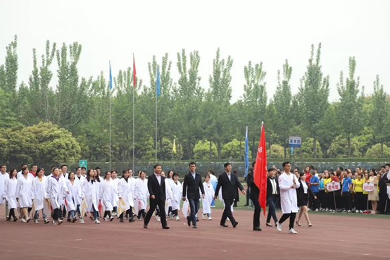 教师和学生代表气宇轩昂、热情高涨。喊着嘹亮的口号,迈着铿锵的步伐,斗志昂扬地依次走过主席台。各单位代表队极具特色的展演,吸引了全场的目光,赢得了无数的掌声与喝彩。