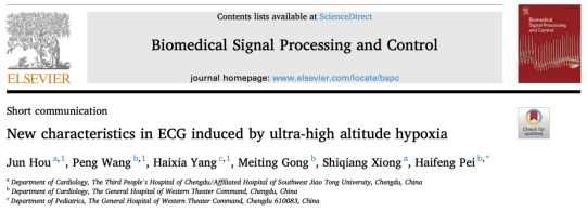 博士生导师裴海峰和硕士生导师侯君在《Biomedical Signal Processing and Control》期刊发表题为“New characteristics in ECG induced by ultra-high altitude hypoxia”的文章(IF:5.076)。该篇论文的第一作者为91暗网