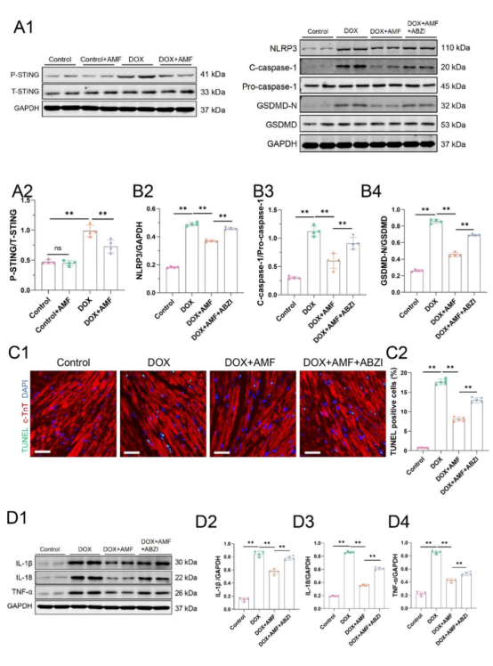 综上,该研究发现了AMF通过抑制STING/NLRP3通路来抑制心肌细胞焦亡和炎症,改善阿霉素诱导的心肌损伤和心功能不全,为治疗化疗药物诱发的心脏毒性提供了新思路。