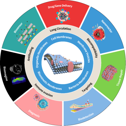 生物医学材料是一类用于与生命系统接触和发生相互作用的一类天然或人工合成的特殊功能材料。然而生物医学医应用仍然受到生物相容性,生物降解性及生物再吸收等问题的限制。而生物膜的精细结构和奇妙的功能是长期自然选择过程的成功进化结果。它们优异的生物相容性和生物功能性被广泛用于构建多功能生物医学材料并具有很强的竞争力。