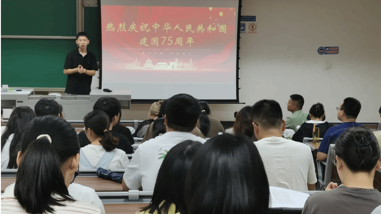 于2024年9月29日下午15:00,在九里校区逸夫楼J4417顺利开展了“中华人民共和国成立75周年红色宣讲”活动。此次活动由辅导员韩鹏飞主持,2024级全体硕士、博士参加。