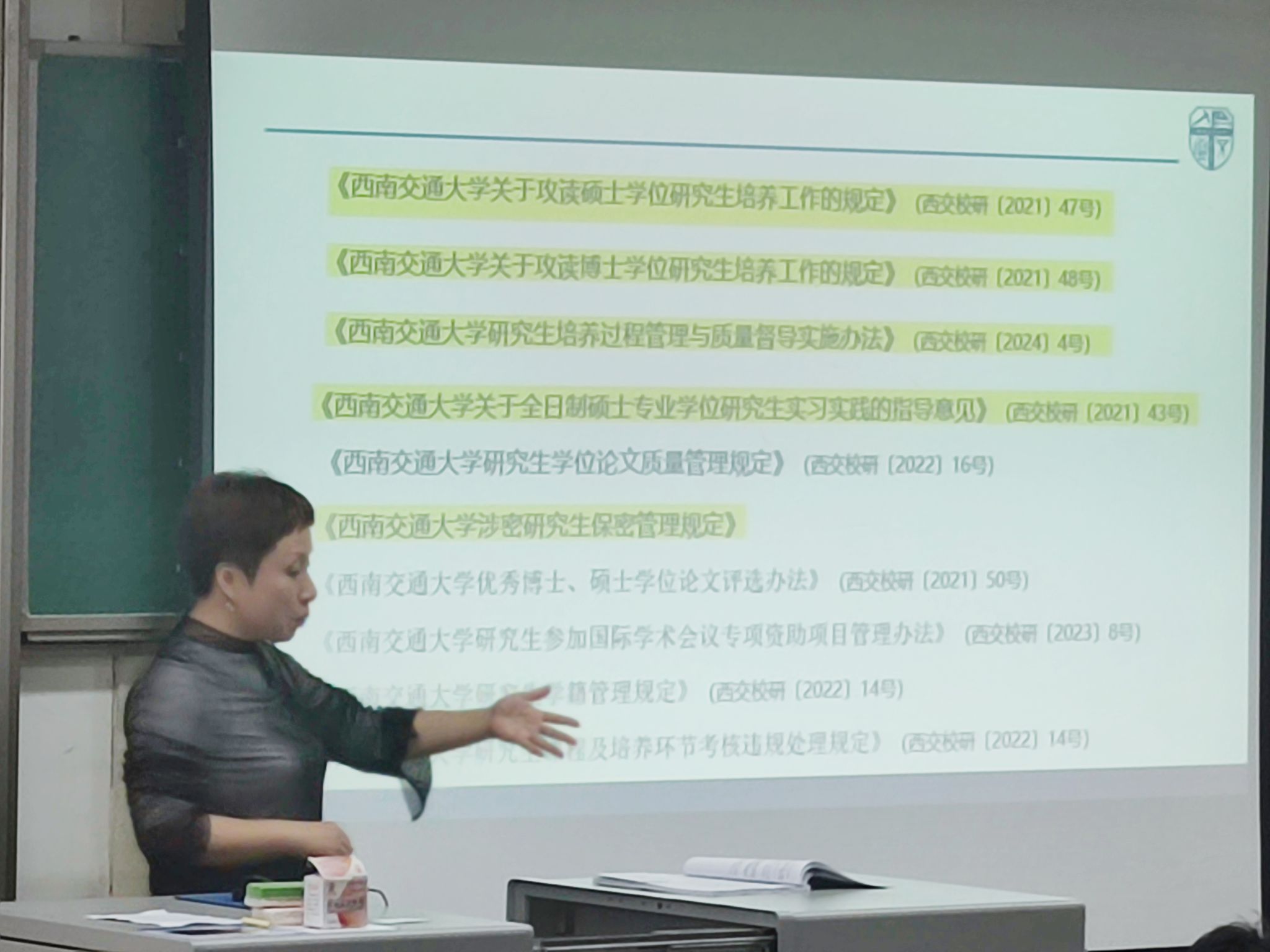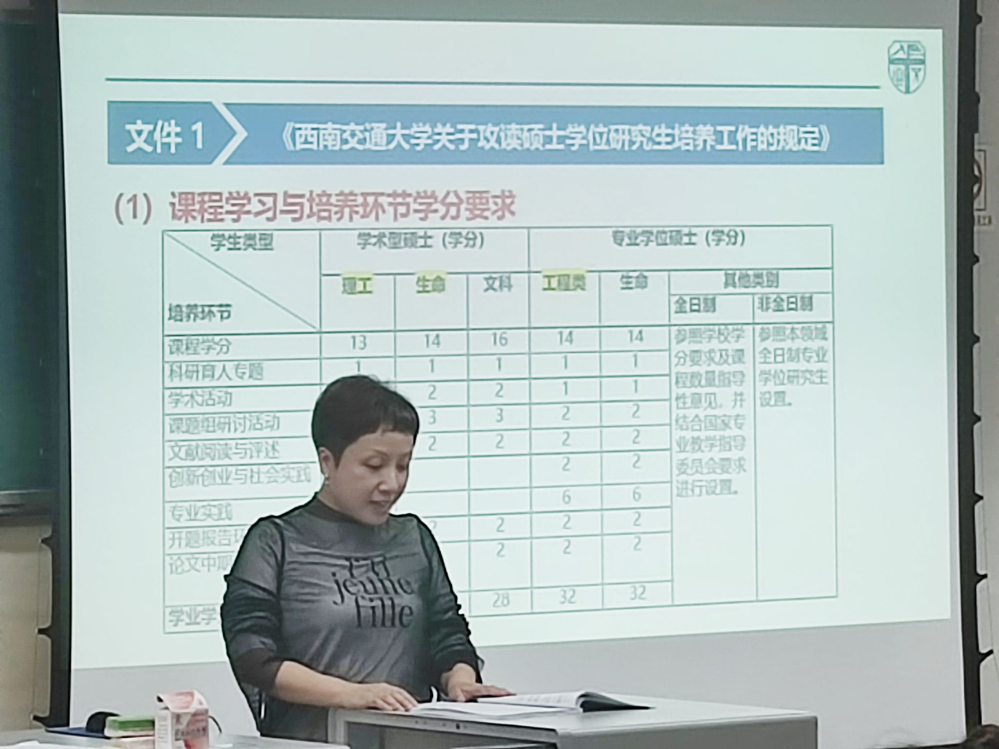 研究生培养过程管理与质量督导实施办法》等。通过对这些规定的细致解读,不仅让同学们明确了课程学习的具体要求如时间安排、学分获取标准等内容,同时也加深了大家对整个研究生期间自我管理和规划的认识。