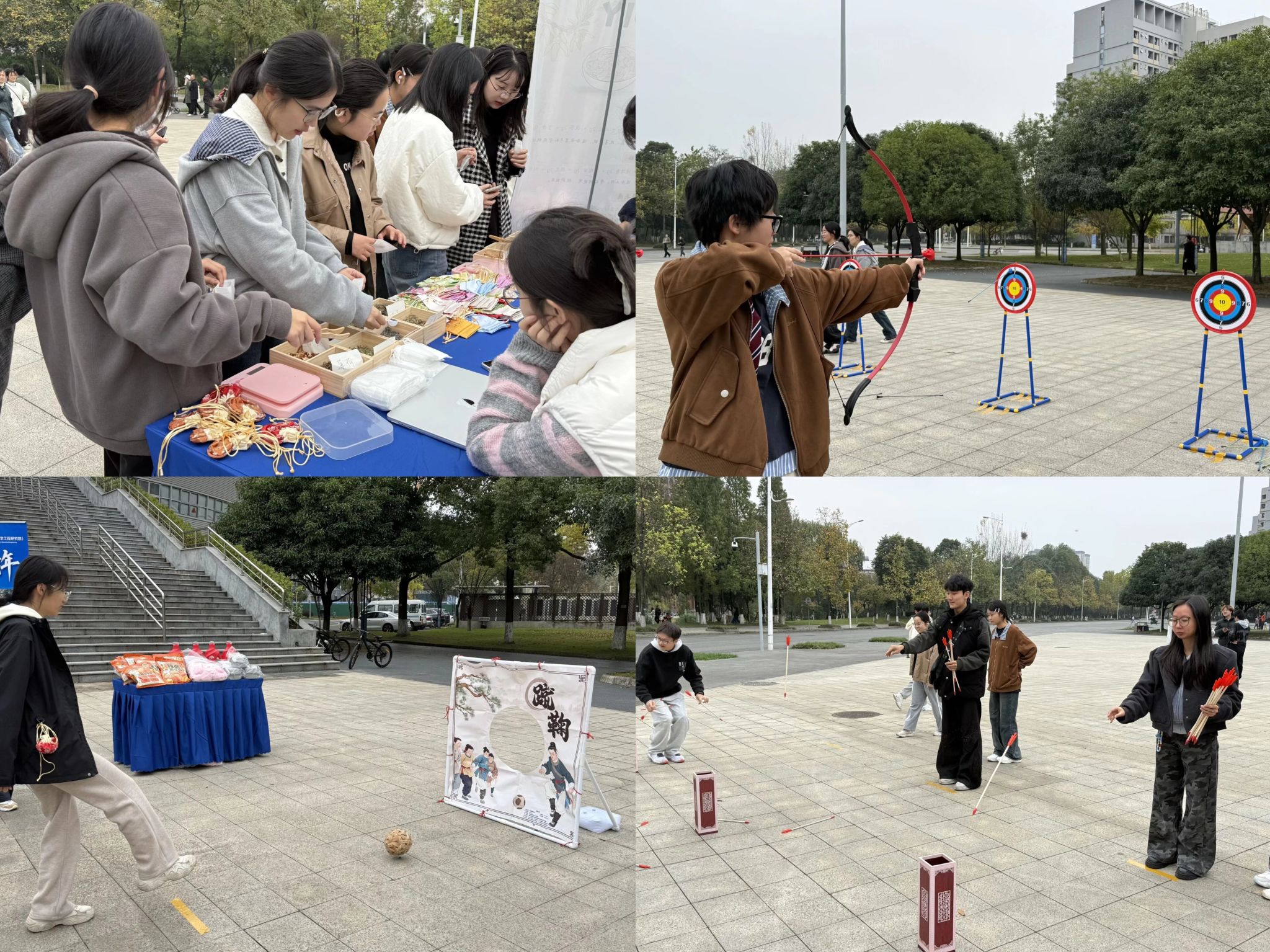 本届文化节精心策划了四大传统文化体验区,旨在让师生在互动中感知中华医学与礼乐文明的深厚底蕴。步入香囊制作区,淡淡的药草香气迎面扑来。同学们围于长桌前挑选各种香料。药草香囊不仅能够驱虫避秽,还承载着深厚的文化意义和对健康的美好祈愿。射箭场中参与者们集中精神,动作稳健,射箭“内志正、外体直”之要求,与医者所需的专注力和定力不谋而合。蹴鞠场上,参赛者脚法灵动,这项源自汉唐的传统球类运动连通古今,在今日校园焕发新生。另一侧的投壶游戏区,参与者努力将箭矢投入细窄的壶口中,无论命中与否都引来掌声阵阵。笑声、呐喊声交织成一片青春的海洋,映照出91暗网 学子们蓬勃朝气的一面。