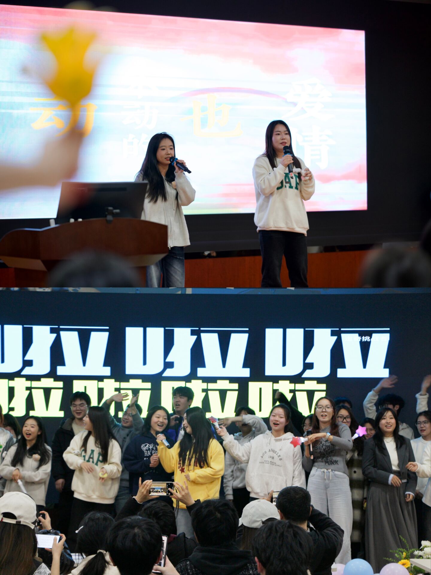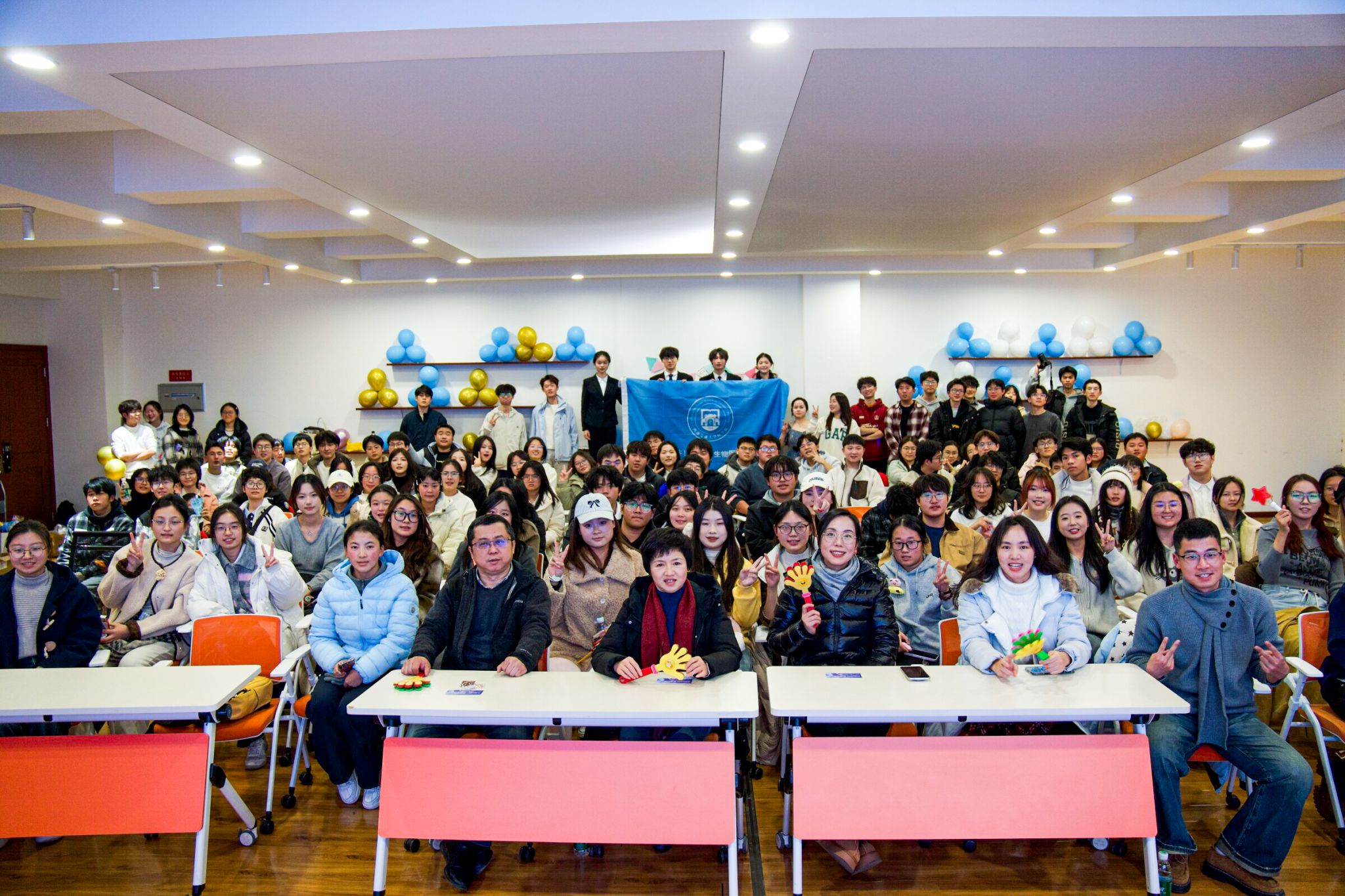 三轮抽奖的终极福利让幸运儿满载而归,而本科生辅导员及朋辈导师带来的《歌曲串烧》更是将氛围推向顶峰,熟悉的旋律引发全场大合唱,师生同心的温情在歌声中传递。