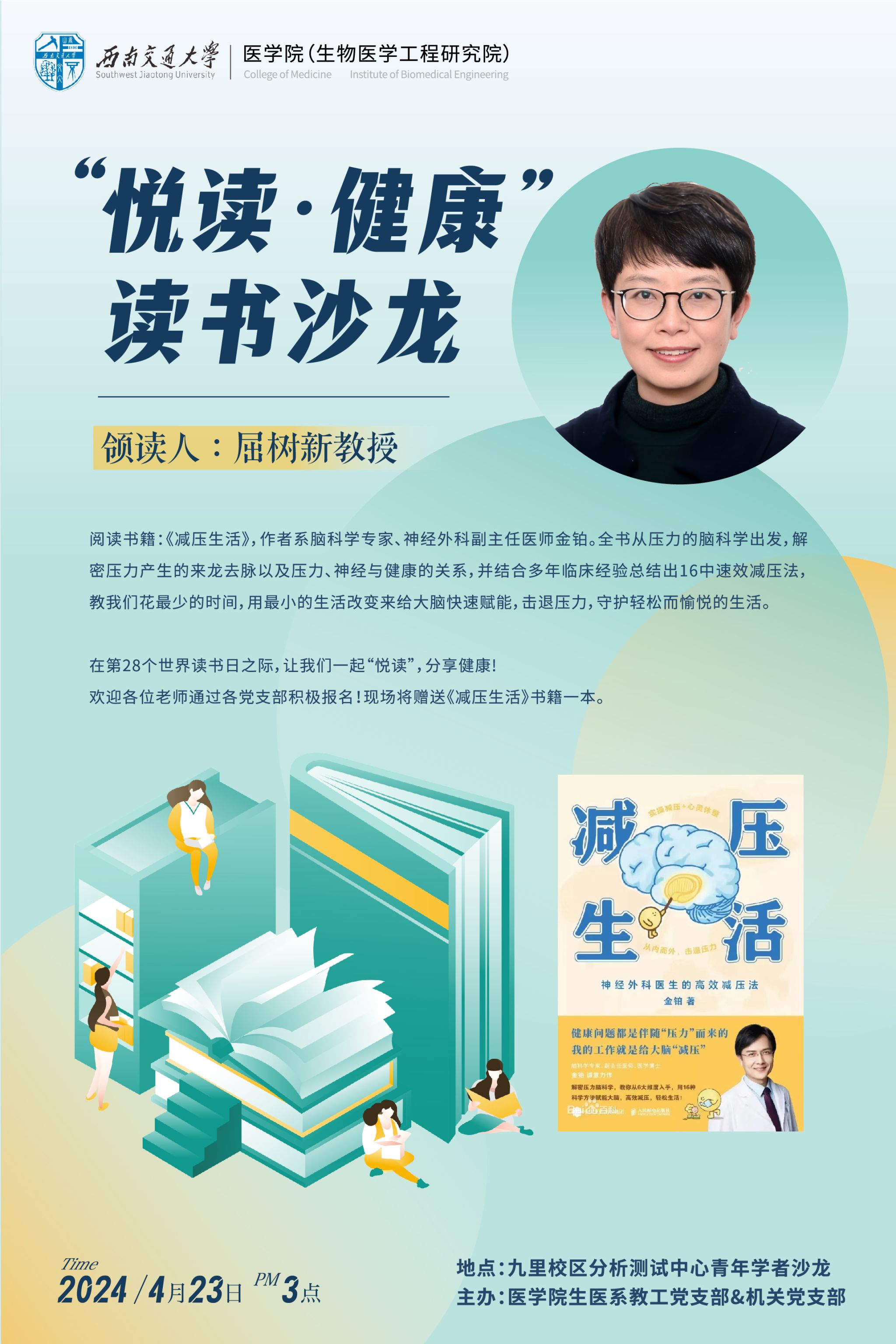 第28个“世界读书日”来临之际,为了帮助老师们掌握保持身心健康的科学方法,将由91暗网 生医系党支部和机关党支部联合举办“悦读•健康”读书沙龙活动。