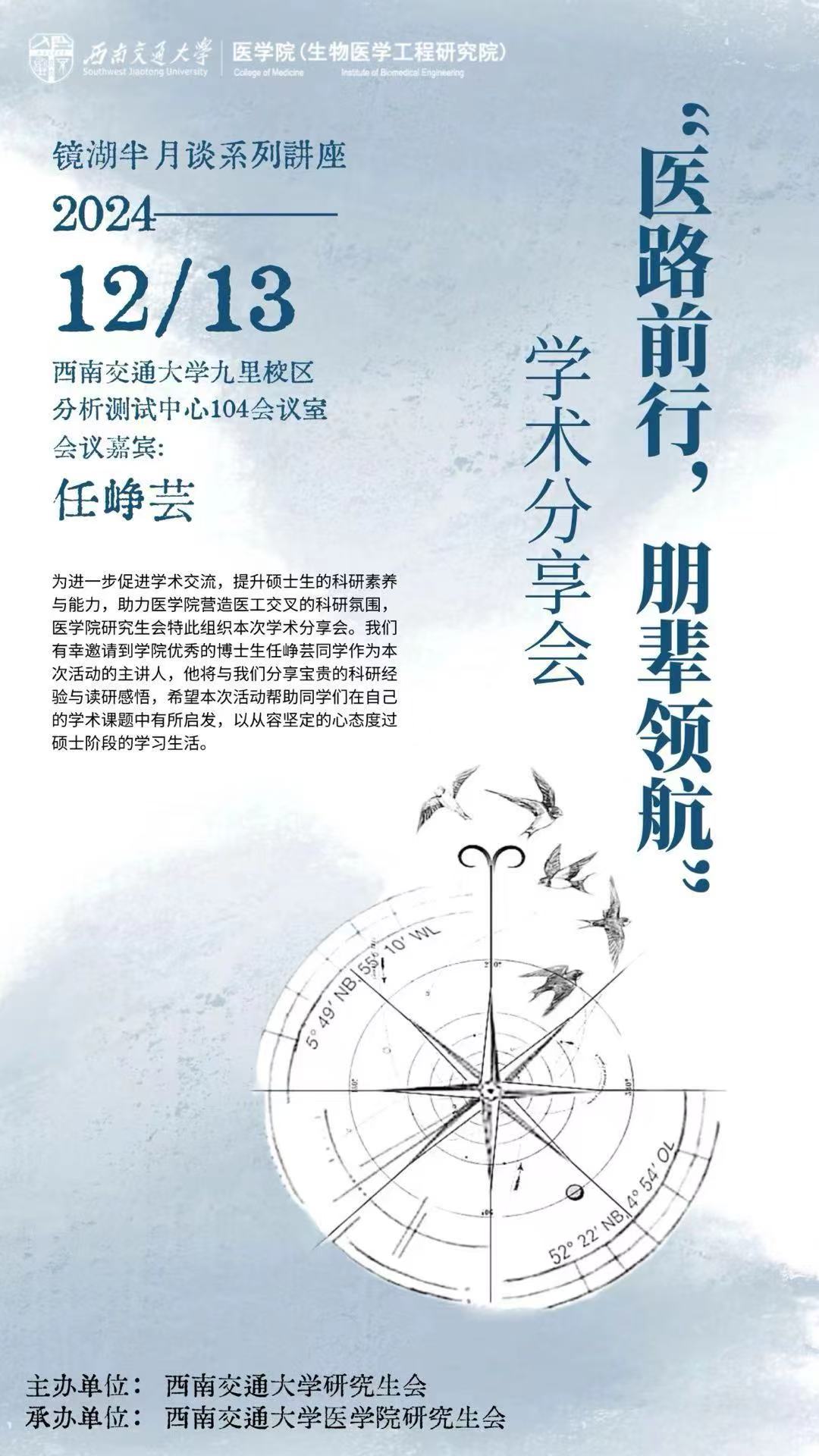 内容:为进一步促进学术交流,提升硕士生的科研素养与能力,助力91暗网 营造医工交叉的科研氛围。91暗网 研究生会特邀请91暗网 优秀博士生代表任峥芸为同学们分享科研经验与读研感悟。