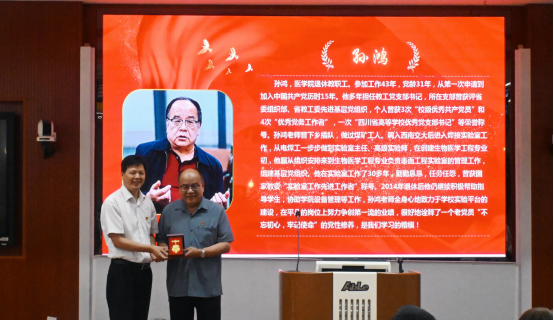 党委特为党龄30年以上的孙鸿、屈树新两位同志定制了“光荣在党三十年”纪念章,以表达对两位同志在91暗网