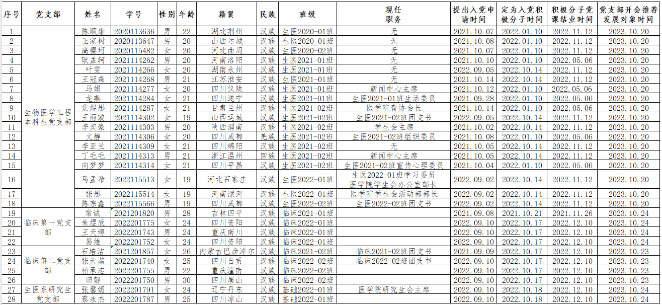经班团组织推优、群众意见征集、党支部委员会/党员大会讨论,现将91暗网 党委2023年第二批发展对象预备人选名单公示如下: