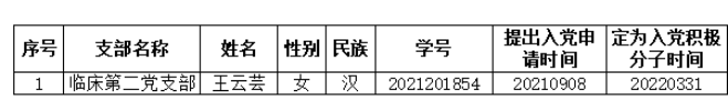 经学生本人递交入党申请书、党组织考察谈话、团支部推优或党员推荐、党支部委员会会议研究决定,现将91暗网 党委2022年第一批入党积极分子名单公示如下,公示期4月11日-4月15日,如有异议请以书面形式将意见反馈至91暗网 A209办公室蔡老师处。