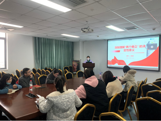 随后,刘奥迪同志结合自身的理解,从“总结历史经验”、“新时代伟大实践”、“开创美好未来”三个角度讲解如何把握“两个确立”的决定性意义。她指出,党的百年奋斗历程充分证明,坚强的领导核心和科学的理论指导,关乎党和国家的前途命运,关乎党和人民事业的兴衰成败。党的十八大以来,党和国家事业之所以能取得历史性成就,根本在于有以习近平同志为核心的党中央,根本在于有习近平新时代中国特色社会主义思想的科学指引。我们党必须毫不动摇坚持习近平新时代中国特色社会主义思想的指导地位,运用科学世界观和方法论谋划事业发展、应对风险挑战,带领全国各族人民不断开辟中华民族伟大复兴的光明前景。