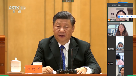 首先,大家集体观看了习总书记在纪念辛亥革命110周年大会上的讲话视频。