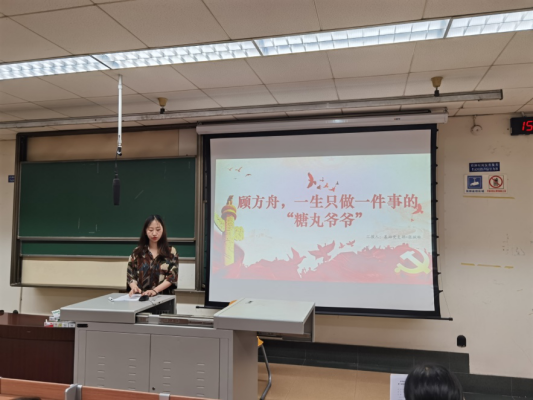 第三个故事是由基础医学党支部的张婉琳同志分享的《“糖丸爷爷”顾方舟——一生只做一件事》。“舍己幼,为人之幼,这不是残酷,是医者大仁。为一大事来,成一大事去。功业凝成糖丸一粒,是治病灵丹,更是拳拳赤子心。你就是一座方舟,载着新中国的孩子,渡过病毒的劫难。”这是感动中国人物“顾方舟”的颁奖词。顾方舟是我国脊髓灰质炎疫苗研发生产的拓荒者、科技攻关的先驱者。他研发的脊髓灰质炎疫苗“糖丸”护佑了几代中国人的生命健康,使中国进入无脊髓灰质炎时代。从1957年到2000年,消灭脊髓灰质炎这条不平之路,顾方舟艰辛跋涉了44年。而当事人,顾方舟却只是淡淡的说到“我一生只做了一件事,就是做了一颗小小的糖丸。”