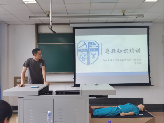 博士党支部的各位进行急救知识普及。整个活动分为两个部分,由罗光毅同学为同学们讲解急救知识,包括心肺复苏以及海姆立克急救法,其后为大家演示与讲解徒手成人心肺复苏以及进行海姆立克急救的操作要点,并请同学们上来进行实操训练。