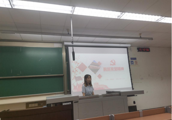 最后,由基础医学党支部杨东琼同志分享《脱贫攻坚精神》。杨东琼同学从脱贫攻坚精神的概念、主要内容、丰富内涵等方面讲述伟大的脱贫攻坚精神。新时代脱贫攻坚实践坚持发扬钉钉子精神,“一张蓝图绘到底”,充分彰显了中国共产党人的担当。
