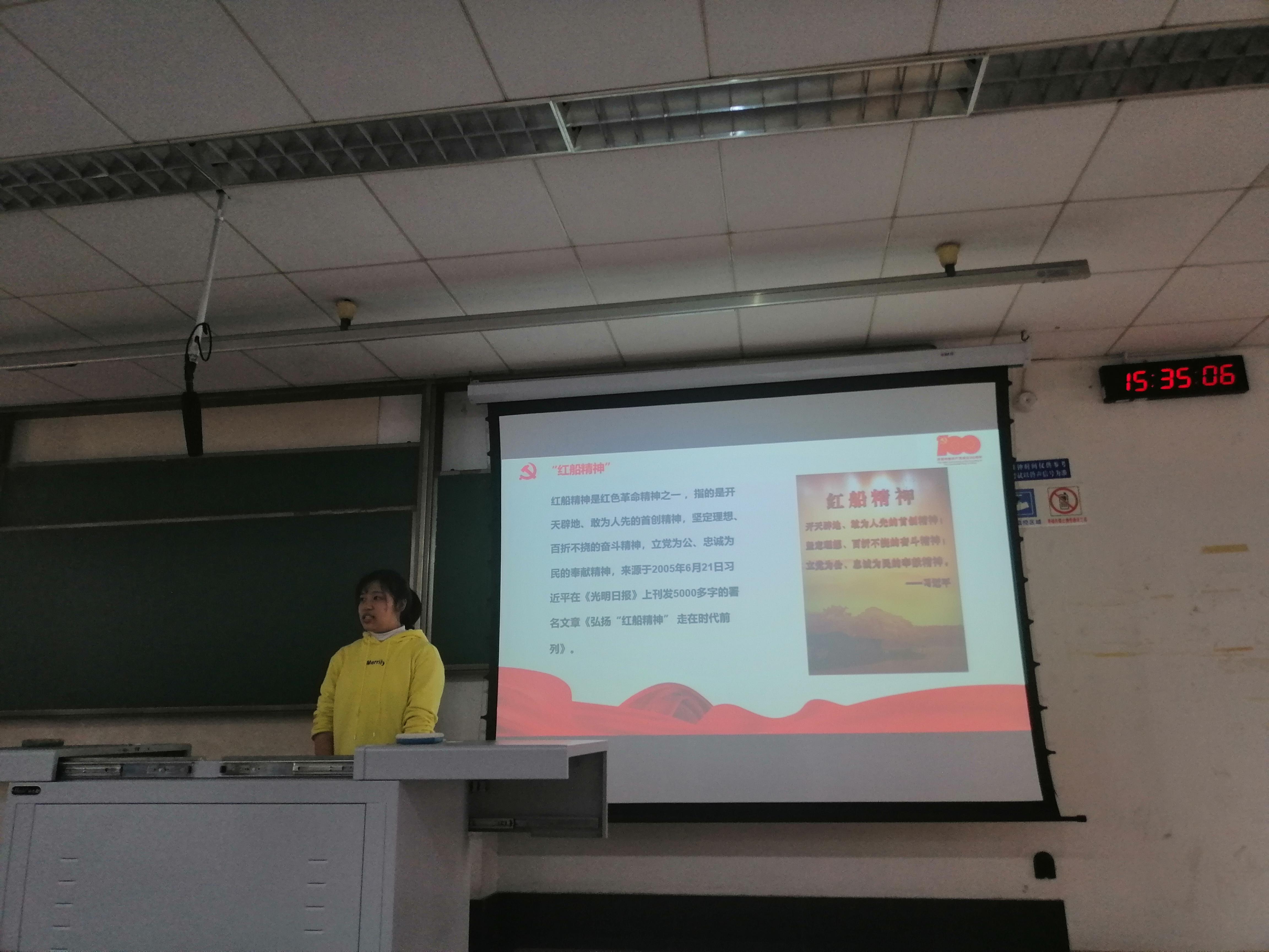首先是由临床2020级党小组代表官敏同志带来红船精神的分享,1921年,中国共产党第一次全国代表大会在嘉兴南湖一条画舫船上通过中国共产党的第一个纲领和决议,正式宣告中国共产党庄严诞生,这条小船也被当地群众亲切的称为“红船”,红船精神是红色革命精神之一 ,指的是开天辟地、敢为人先的首创精神,坚定理想、百折不挠的奋斗精神,立党为公、忠诚为民的奉献精神。