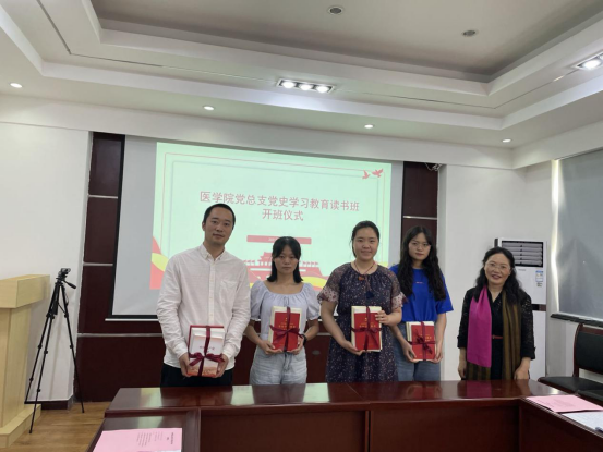 第三项议程,由朱健梅副校长给师生党员代表们发放了党史学习书籍和笔记本。