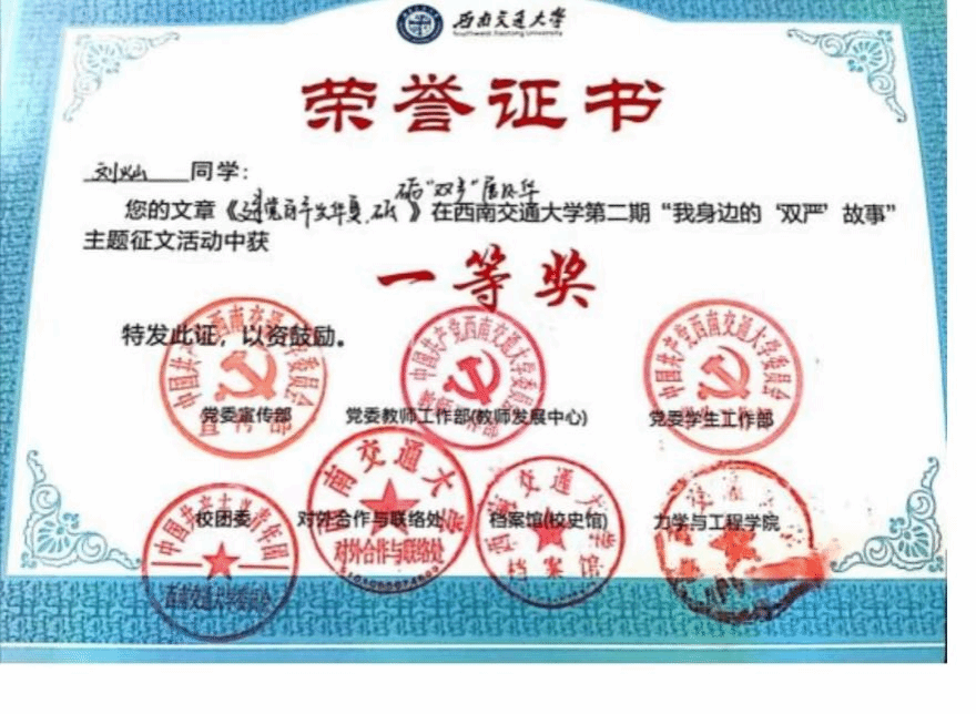 以文为引、以笔抒情,这就是她的对生活与工作的调律,这样的爱好并不局限于孤芳自赏,而是借感触,抒感想,一篇“双严”征文一等奖文章由此而出,当谈及此处,她讲述了这样一段故事: