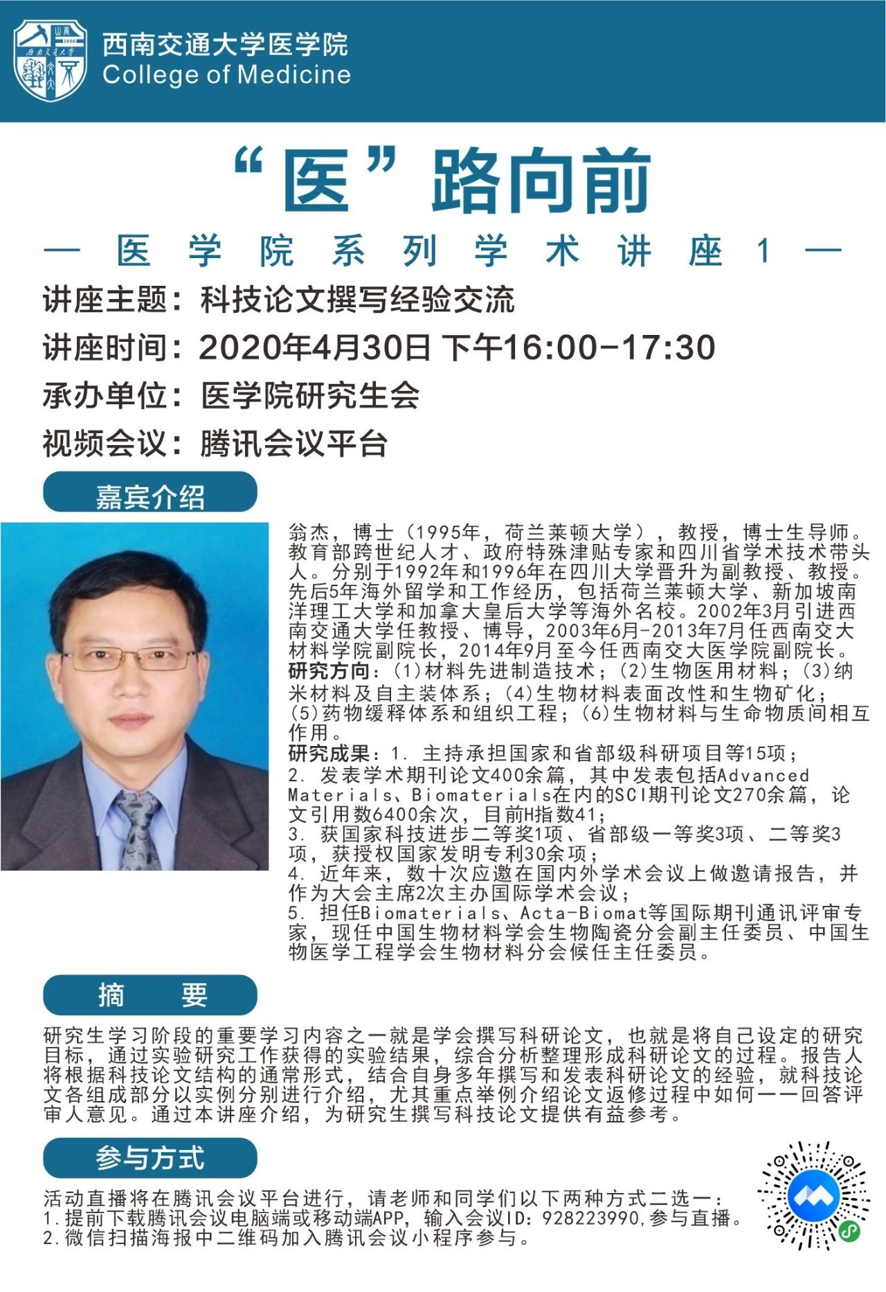 嘉宾介绍:翁杰,博士(1995年,荷兰莱顿大学),教授,博士生导师。教育部跨世纪人才、政府特殊津贴专家和四川省学术技术带头人。分别于1992年和1996年在四川大学晋升为副教授、教授。先后5年海外留学和工作经历,包括荷兰莱顿大学、新加坡南洋理工大学和加拿大皇后大学等海外名校。2002年3月引进91暗网 任教授、博导,2003年6月-2013年7月任西南交大材料91暗网 副院长,2014年9月至今任西南交大91暗网 副院长。